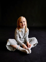 Hauva-sukat ovat merinofroteiset lastensukat, jotka on tehty pikkujaloille, joilla on aina vauhti päällä. Pehmeä ja hengittävä merinovilla pitää varpaat lämpiminä, ja froteinen sisäpinta tuntuu ihanan mukavalta jalan ihoa vasten.