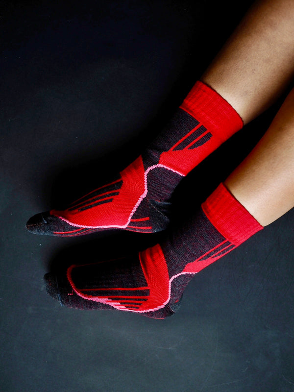 Tässä sukassa yhdistyvät laadukkaan merinovillan ja antibakteerisen hopealangan parhaat puolet. Merinovilla lämmittää tehokkaasti jopa kosteana, vaikka neulos on ohut ja kevyt. Hopea puolestaan ehkäisee bakteerien kasvua ja pitää jalan raikkaana hikisissä suorituksissa. Kylmyyttä ja kosteutta torjuva merinohopeasukka on suunniteltu erityisesti talviliikuntaan, jossa vaatteiden on pidettävä keho yhtä aikaa lämpimänä ja kuivana. Se on myös vaelluksella erinomainen alussukka paksumman villasukan alle. Virtaviivainen printti ja upeat värit saavat askeleen lentämään ja suksen luistamaan!