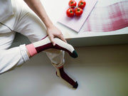 Sukkien päämateriaali on sileä ja pehmeä GOTS-sertifioitu luomupuuvilla. Luomupuuvilla tuntuu miellyttävältä ihoa vasten, joten se sopii herkälle iholle ja sukkien kaltaisiin vaatteisiin, jotka ovat suorassa kosketuksessa ihoon. Puuvilla hengittää ja sitoo kosteutta tuntumatta märältä. Se sopii kerrospukeutumiseen, lämpimään säähän ja urheiluun, sillä puuvillavaatteen alla iho ei tunnu nihkeältä. Puuvilla on vahva luonnonkuitu, ja sukissa on myös rakennetta lujittavaa polyamidia ja joustavaa lycraa. Materiaaliyhdistelmän ansiosta sukka kestää ahkeraa käyttöä, joustaa ja pysyy muodossaan.