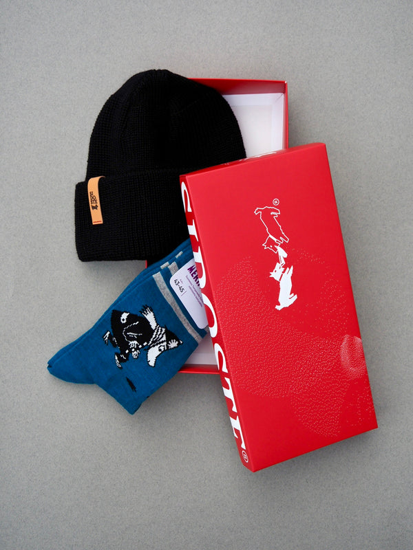 Lahjapakkaus - Merinovillapipo ja Moomin x Sidoste Poliisimestari-merinovillasukat