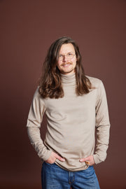 Miesten korkeakauluksinen silkkimerinovillapaita - Beige