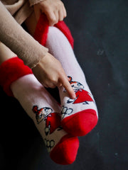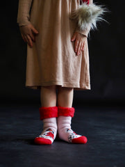 Sidosteen legendaariset pörrösukat ovat talven suosikit – pehmeät, lämpimät ja aina vähän ihanan nostalgiset. Tämän talven versiossa Pikku Myy seikkailee lumilinnan loisteessa, tuoden ripauksen rohkeaa mieltä ja satumaista tunnelmaa pakkaspäiviin.